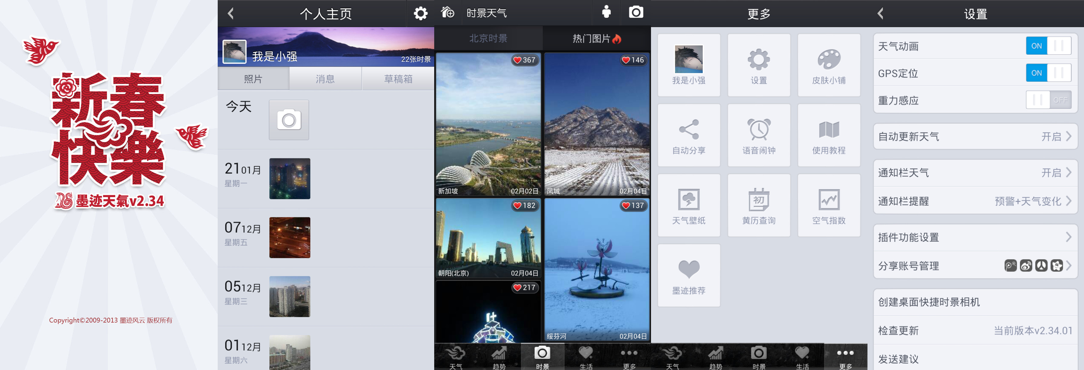 清晨甜美语音播报、新春皮肤、空气指数、动态壁纸.......一切尽在“更多”;