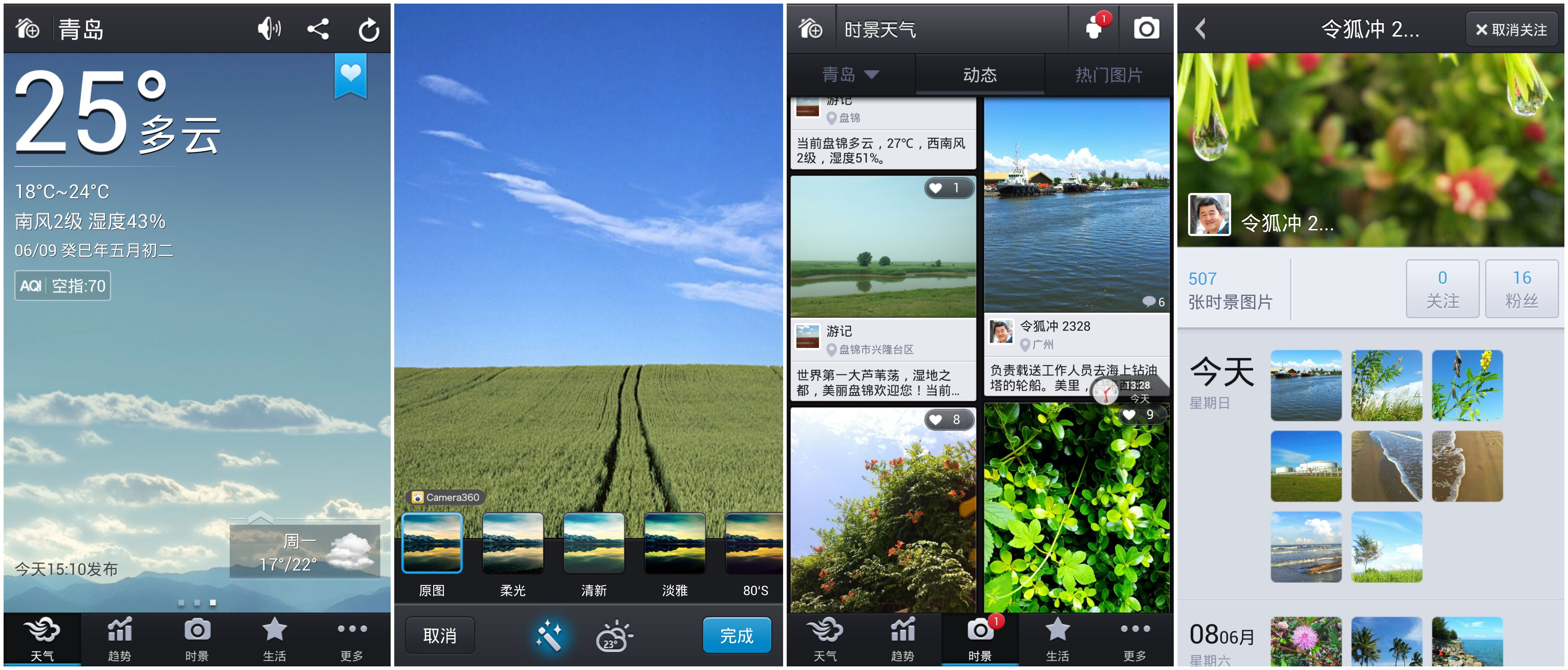 1、天气、空气指数、时景等所有分享页面的优化显示;