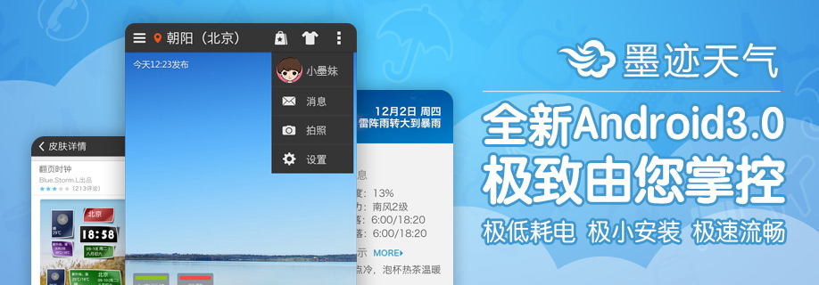 “三极”齐发,快下载进入→墨迹天气安卓3.0极致时代。
